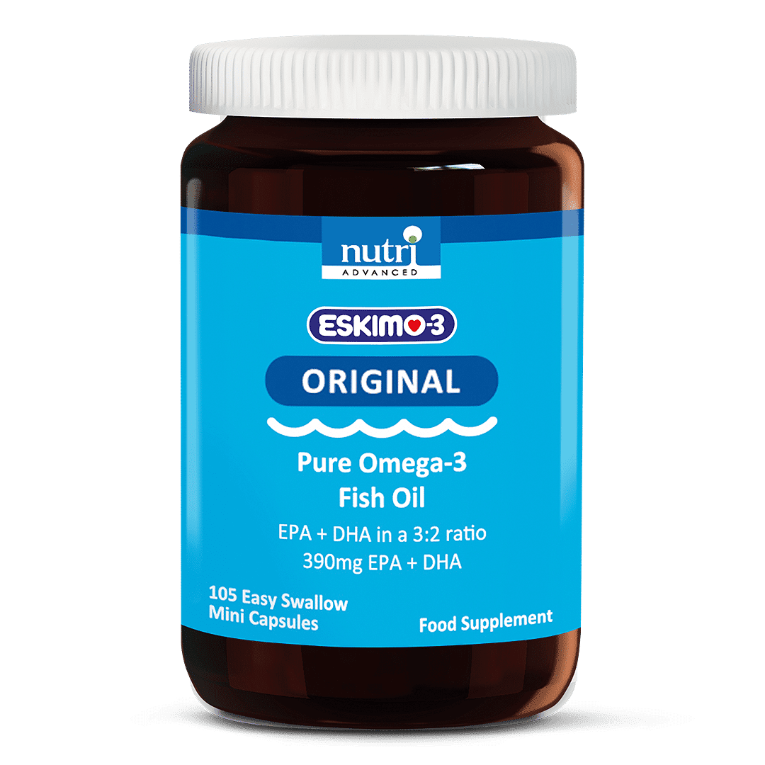 An essential nutrient, omega-3 fatty acids have been well studied for their health benefits. The omega-3 fatty acids EPA and DHA contribute to the normal function of the heart, and DHA is known to support normal brain function and vision. Our sustainably sourced Eskimo®-3 mini-capsules are a convenient way to top up your omega-3 levels, purity tested and enriched with patented Pufanox® to ensure they stay fresher for longer.